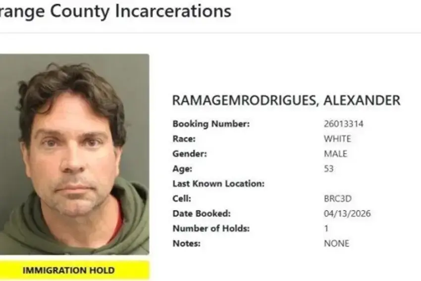 A imagem, conhecida como “mugshot”, aparece no sistema de registros do condado de Orange. Ramagem aparece na foto com um moletom verde e expressão neutra. O documento oficial também lista informações pessoais como idade, gênero e a cela onde o brasileiro está custodiado.