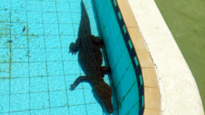 Calor leva jacaré até piscina de clube no norte de MG, veja o vídeo