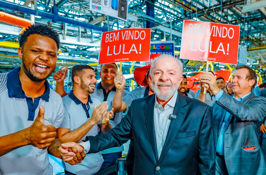 No chão de fábrica, Lula cobra respeito de Trump: ‘Não tenho medo de cara feia’