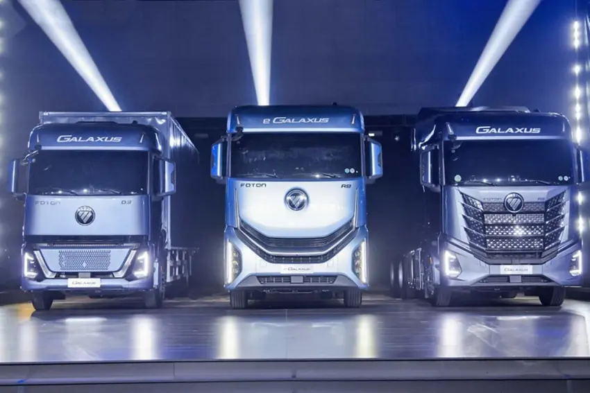 Entre as novidades, a marca apresentou caminhões pesados da linha Galaxus. Os modelos são montados sobre a plataforma, que leva o mesmo nome e que permite adequação para mais de 90 tecnologias desenvolvidas pela Foton. O sistema elétrico é um deles e atinge até 97,5% de eficiência energética, segundo a própria fabricante.