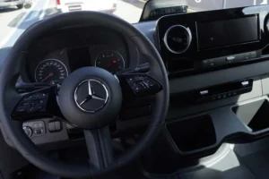 Além do conforto térmico e acústico, a versão automática traz recursos de série como a função Hold (assistente de partida em rampas), paddle shifts atrás do volante para trocas manuais e apoio de braço exclusivo para o motorista. A nova Mercedes Sprinter automática chega com dois anos de garantia de fábrica. Como diferencial de lançamento, a marca oferece ainda as duas primeiras revisões gratuitas.